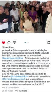 O tema abordado na palestra trouxe clareza e aumentou a autoconfiança das mulheres da equipe da Prefeitura de Nova Veneza